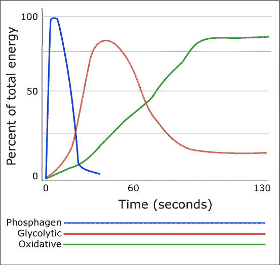 1. The Phosphagen Pathway: fuels intense exercises which are only sustainable for up to 30 seconds (think maximum effort sprints)